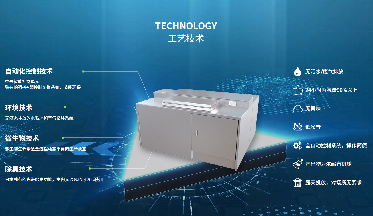 浙江瑞美生態科技有限公司是專業從事廚余垃圾源頭一站式資源化處理的企業,依托日本先進的設備制造工藝,與強大的生物處理技術,創新研發專用于廚余垃圾處理就地化小型設備。完全實現廚余垃圾就地化、無害化、資源化、智能化、無污染就地處理。目前已在政府、企事業、學校、社區、醫院及農村進行廣泛使用,為垃圾分類、綠色城市做出新的貢獻。